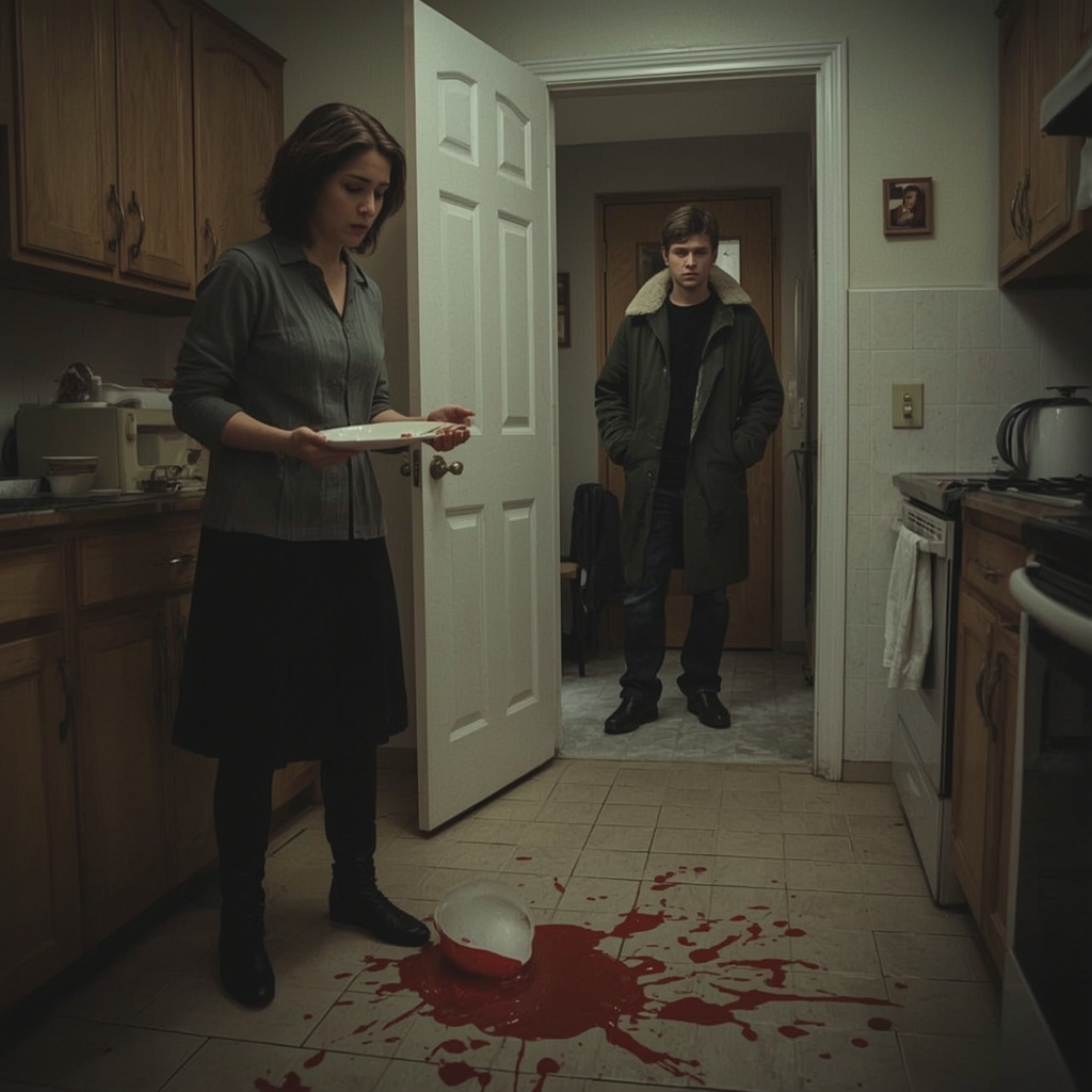 Тарелка выскользнула из рук и разбилась вдребезги. Красные брызги борща разлетелись по всей кухне, как кровь.