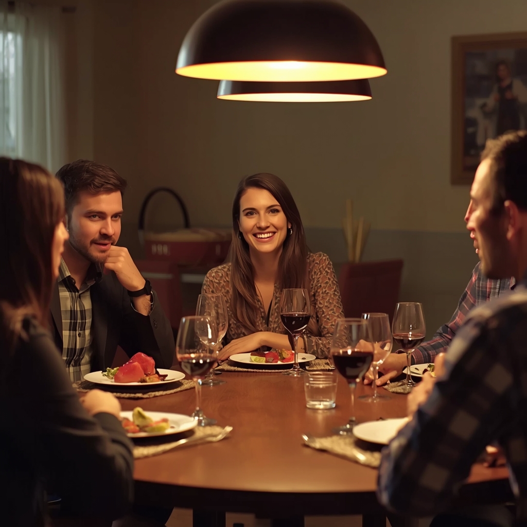 — Кстати, про безопасность! — он громко щёлкнул пальцами, как ведущий. — У нас сегодня приключение было. Она перепутала адрес и пришла к соседям сверху. Представляете? Стоит там, звонит, и такая: «Ой, а у вас тоже ужин?»