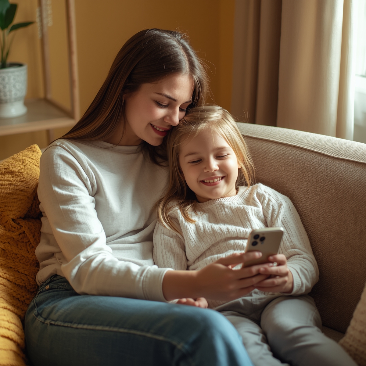 Тут подошла Софья, старшая. Подбежала к маме и забралась на диван, не сдержав улыбки. Немного помолчала, наблюдая, как мама ковыряется в телефоне. А потом заговорила.