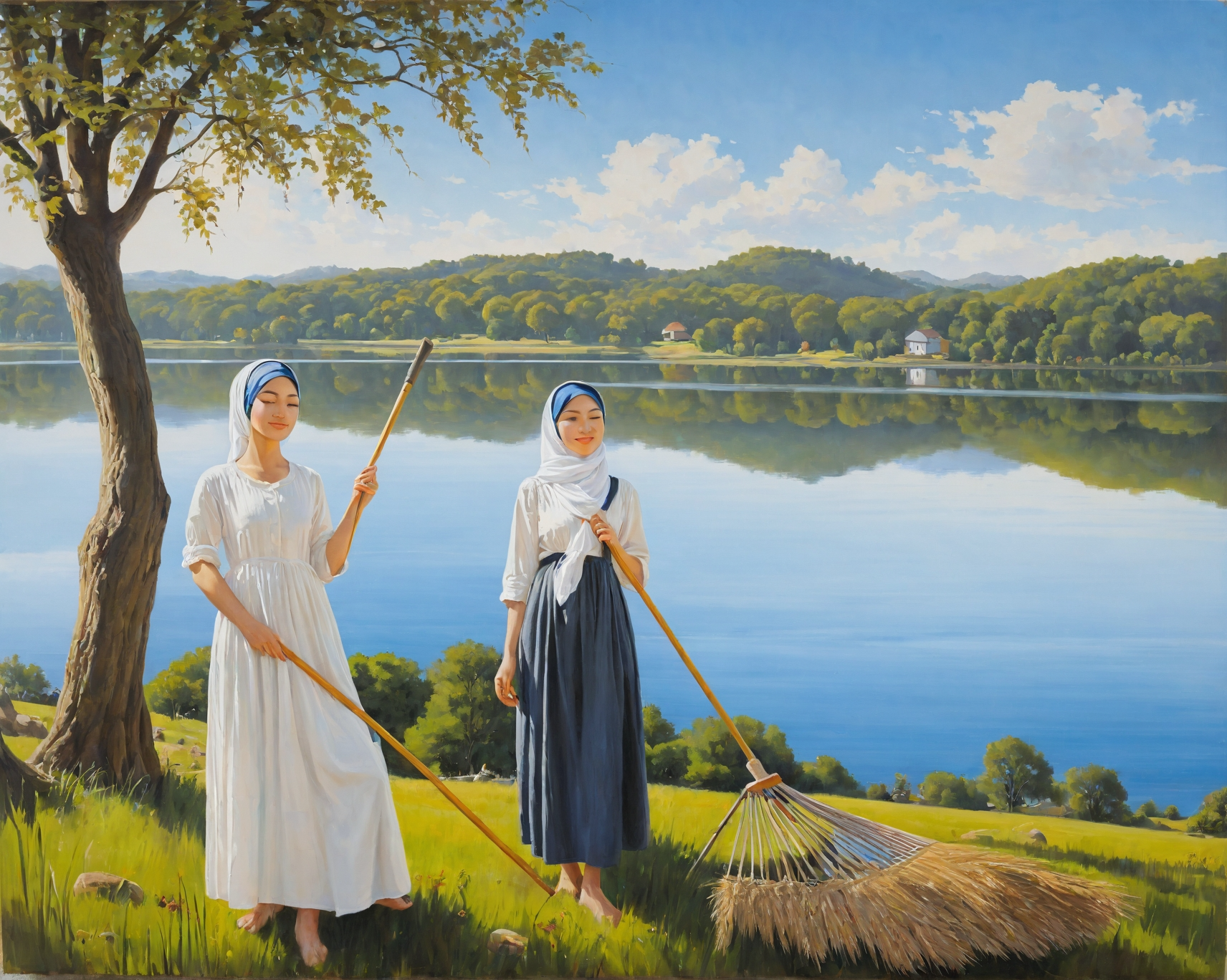 Вышел из дома, чтобы гостя непрошенного впустить, Валентина за ним. Ну, а Машка во дворе крутится, фартуком подпоясана, на голове ситцевый платочек, из-под которого две золотистые косы виднеются, — ну чисто крестьянка.