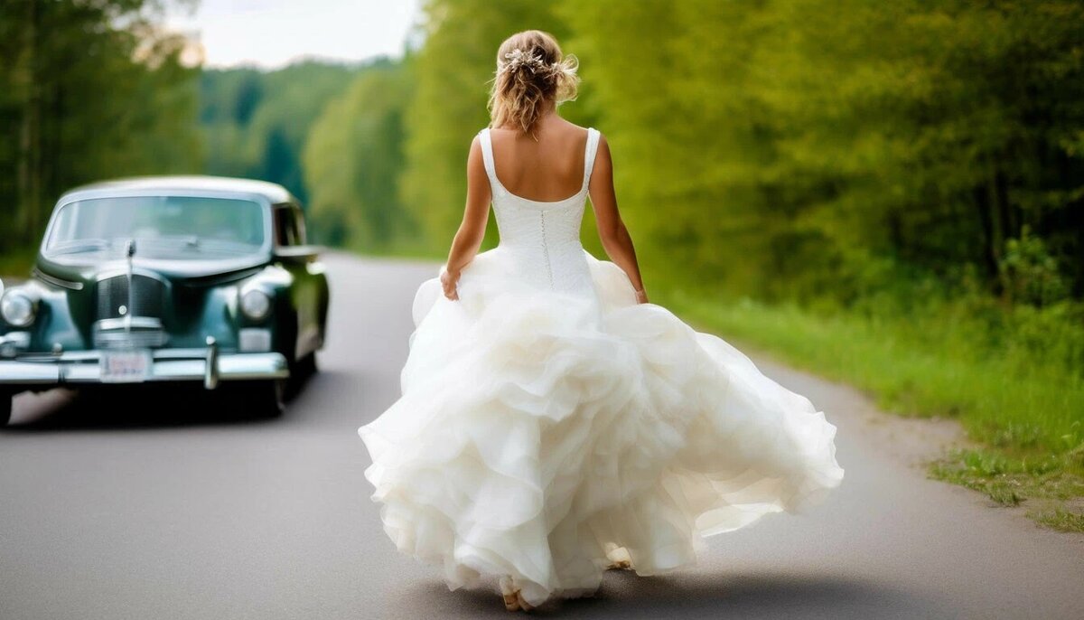 Оля за смотрелась на отъезжающую машину и подумала: » Во даёт! Со своей свадьбы сбежала! Чего это она?»