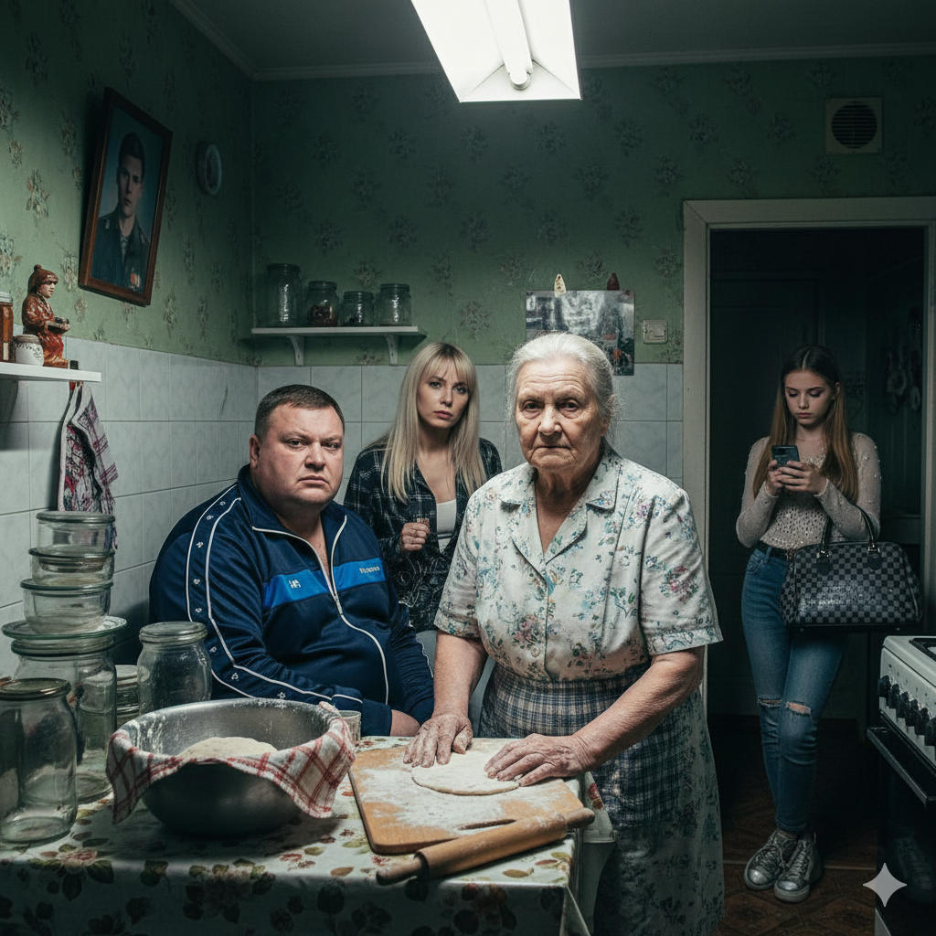 Клавдия Петровна замерла. Скалка в её руках остановилась. Она медленно подняла глаза на сына. В его взгляде не было ничего, кроме злобы и упрямства. Аня стояла за его спиной с торжествующей улыбкой. Леночка испуганно смотрела то на отца, то на бабушку.